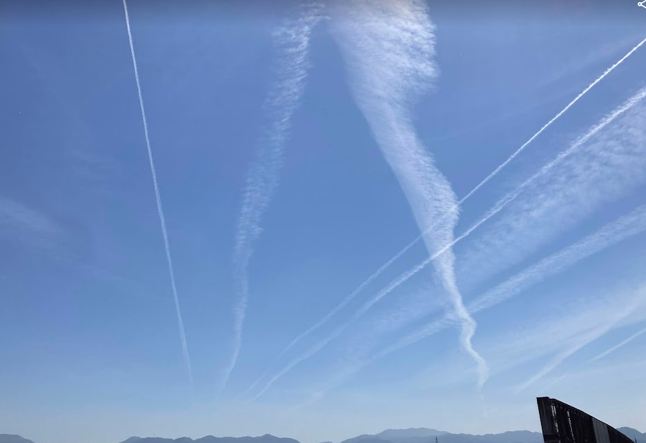 ↑授業参観の日、散歩がてらに歩いて帰ったら長い長い飛行機雲。