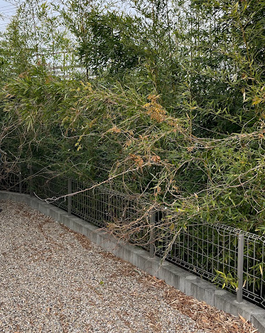 愛知のアパートの樹木越境がまがまがしい。触手状態です。